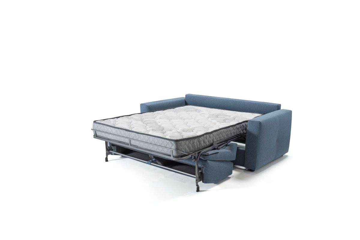 Lisbona, un divano letto che si adatta a tutte le situazioni abitative grazie alle varie tipologie di bracciolo disponibili su richiesta. Un facile movimento consente di ribaltare lo schienale e trasformare il divano in un accogliente letto dotato di un materasso di alta qualità.