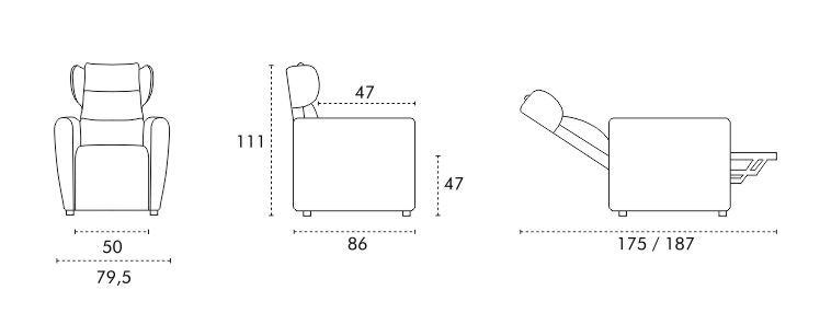 Posizione TV o lettura in cui lo schienale resta in posizione perpendicolare alla seduta e la pediera si apre per garantire comodità alle gambe. Questa posizione è prevista anche con meccanismo ad 1 motore, grazie alla funzione anticipo pediera.